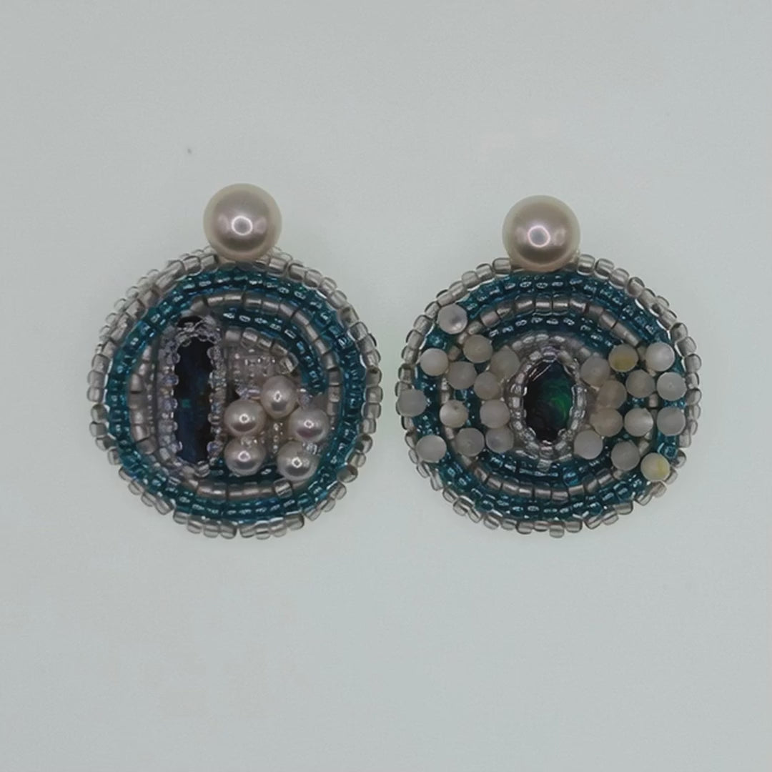 Materials: Fresh water pearls, Boulder Opal, Glass beads, Garnet, Changeable pearl studs or S925 Silver dangling earring. Could be worn as a pendant too (Chain not included).
